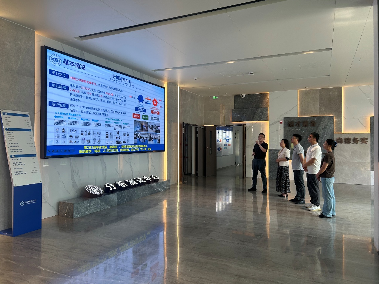 在四号楼一层大厅,刘平一行听取了我校betway西汉姆联马锐主任关于中心建设历程、空间布局、测试方向、仪器设备及信息化建设等方面的介绍。