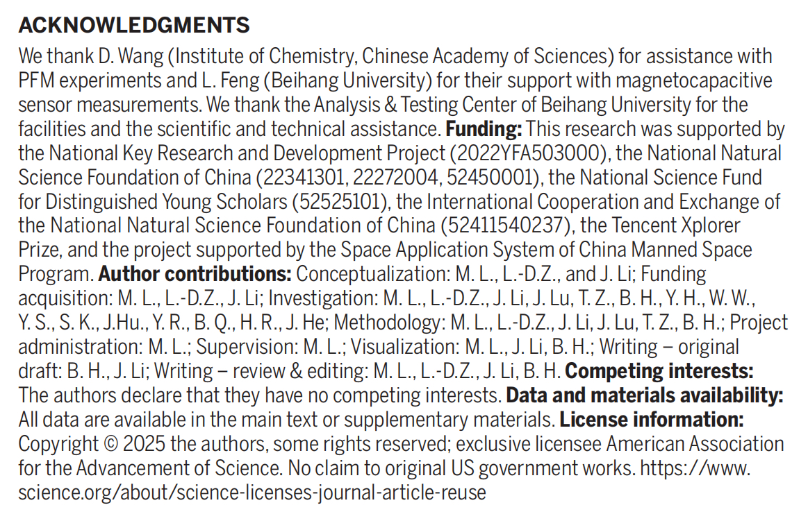 近期,国际顶级学术期刊《Science》以在线全文Research Article形式发表了北京航空航天大学化学学院和仿生界面材料科学全国重点实验室刘明杰教授、李景教授团队与材料科学与工程学院赵立东教授团队在柔性磁电材料领域的最新研究进展:《Strain-coupled, crystalline polymer-inorganic interfaces for efficient magnetoelectric sensing》。该研究通过界面共晶策略成功制备了一种高性能聚合物-无机纳米复合薄膜,为柔性磁电材料的设计与应用开辟了新路径。
