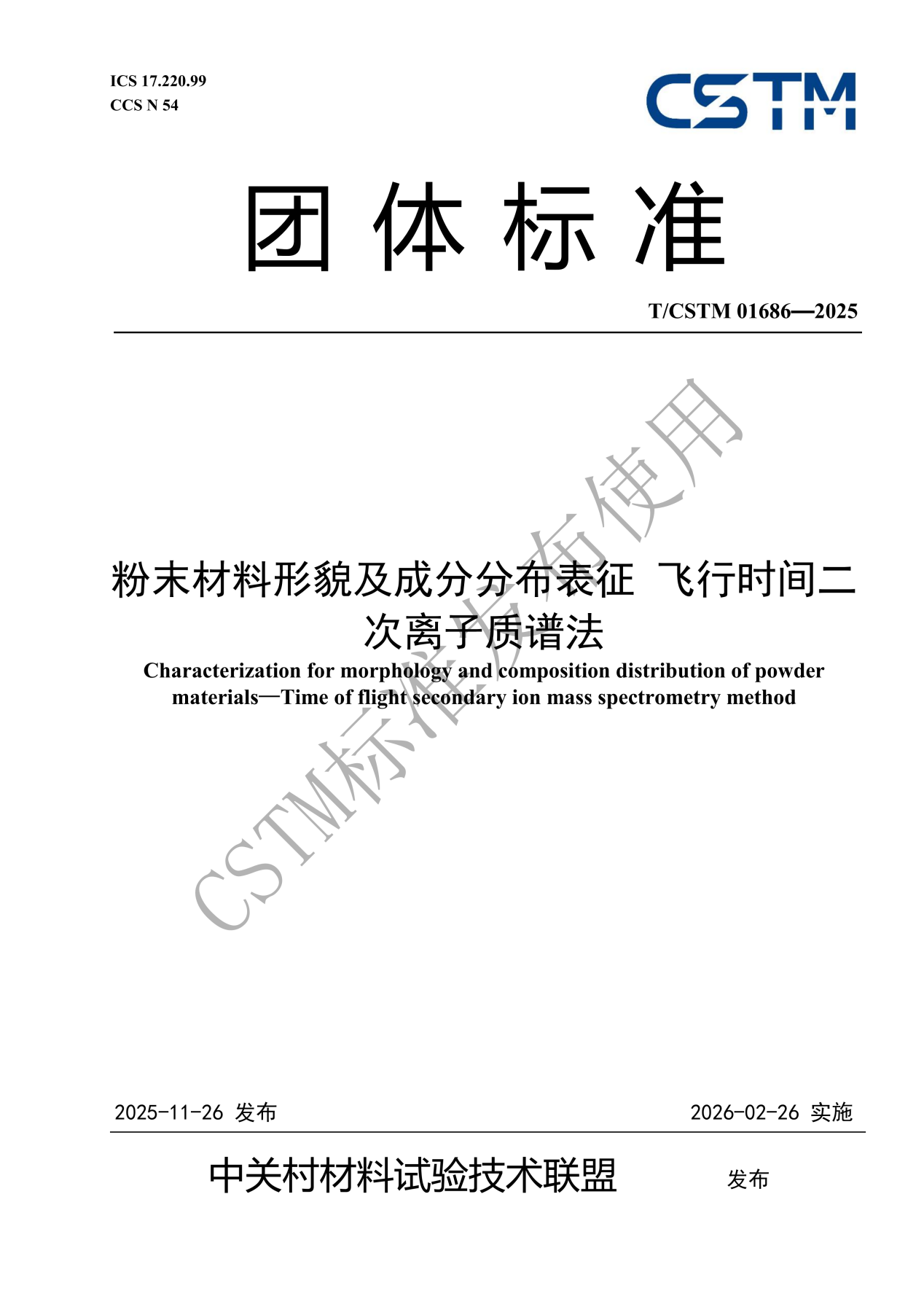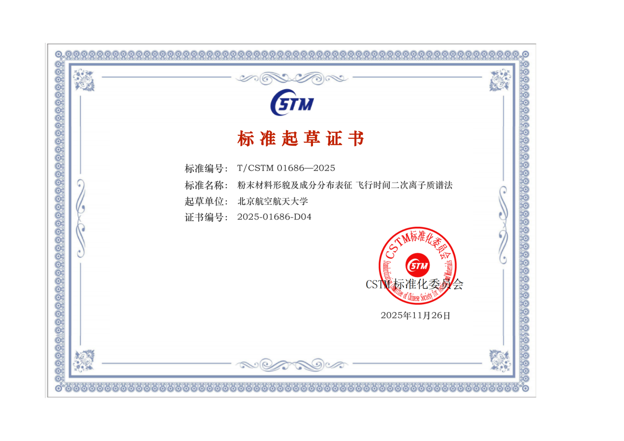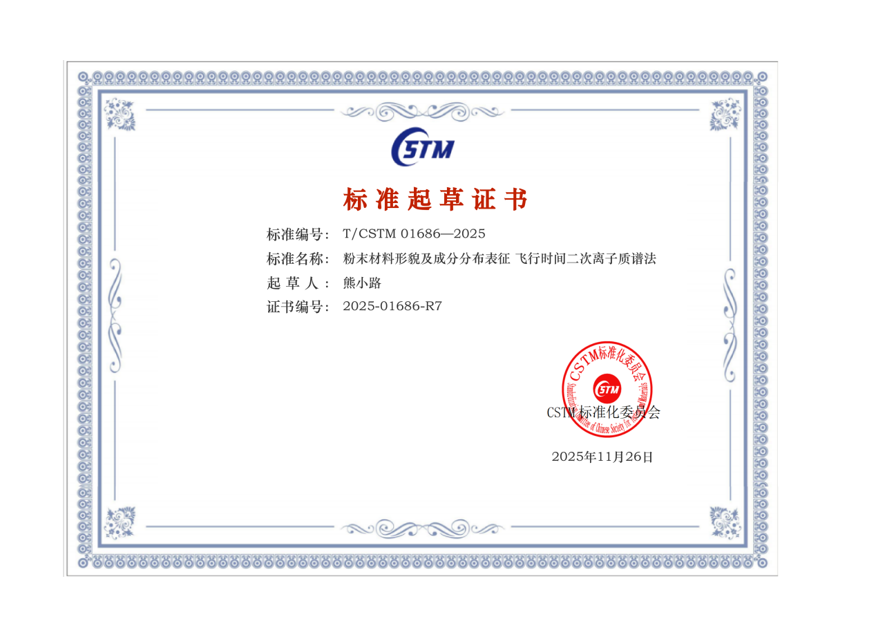 近日,由betway西汉姆联作为联合起草单位起草的《粉末材料形貌及成分分布表征飞行时间二次离子质谱法》(标准号:T/CSTM 01686—2025) 团体标准正式发布。其中,物理性能表征平台技术负责人熊小路老师全面参与了标准的起草、验证、修订等工作。