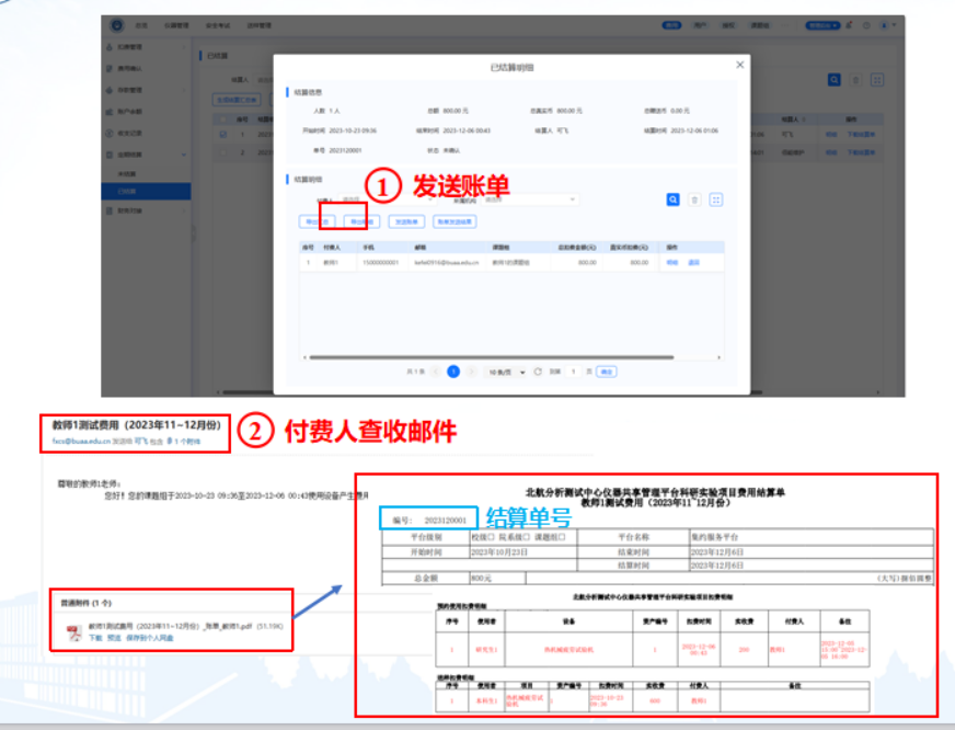 三、betway西汉姆联每月定期推送“费用结算单及扣费明细表”至课题组负责人及课题组授权管理成员的邮箱中,负责人或课题组授权管理成员可以再次核对测试费用,以确保测试费用无异议。