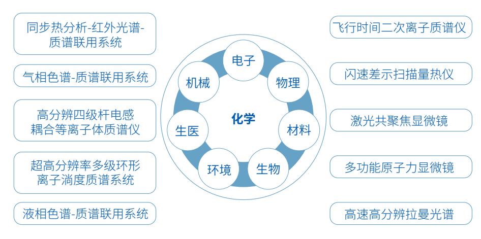 化学分析分室目前拥有各类质谱分析、光谱分析、形貌分析、热分析等仪器共计20余台套,其中基于飞行时间的二次离子质谱(ToF-SIMS)、多功能联用质谱仪等设备可为化学成分分析提供强大的技术支撑。分室提供分析检测、实验教学、分析技术指导等多样化服务,同时面向社会开放,致力于服务涵盖化学、材料、物理、生物、环境、生医、机械、电子等学科。